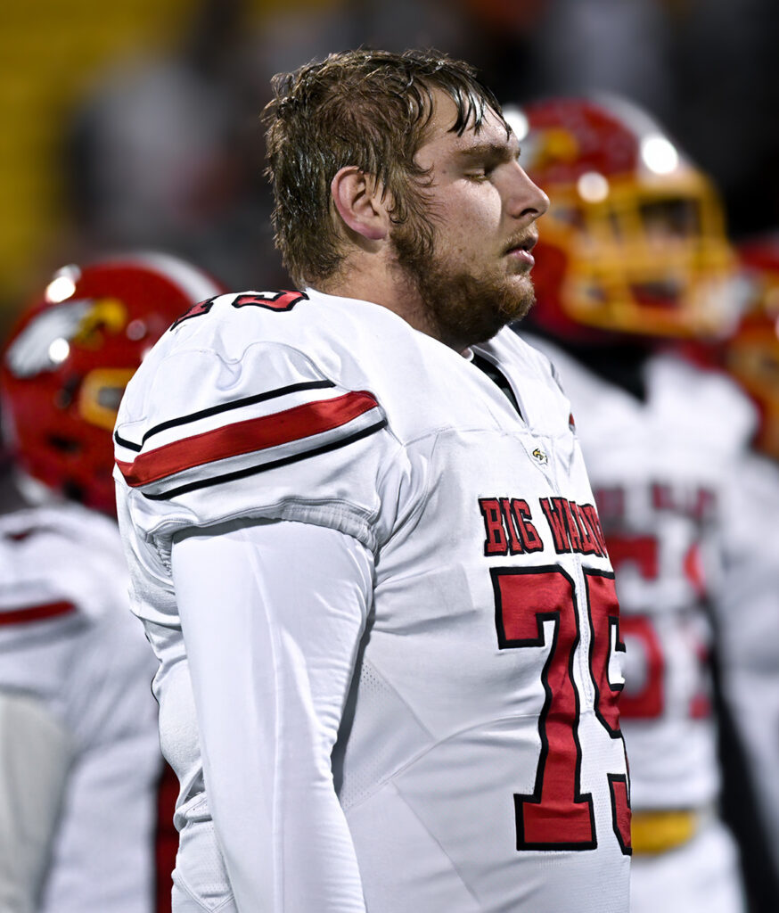 Big Walnut lineman Jackson Parsons feels the weight of the moment as the Golden Eagles fall in their state semifinal rematch with Anderson at Historic Crew Stadium Friday. Photo: John Hulkenberg
