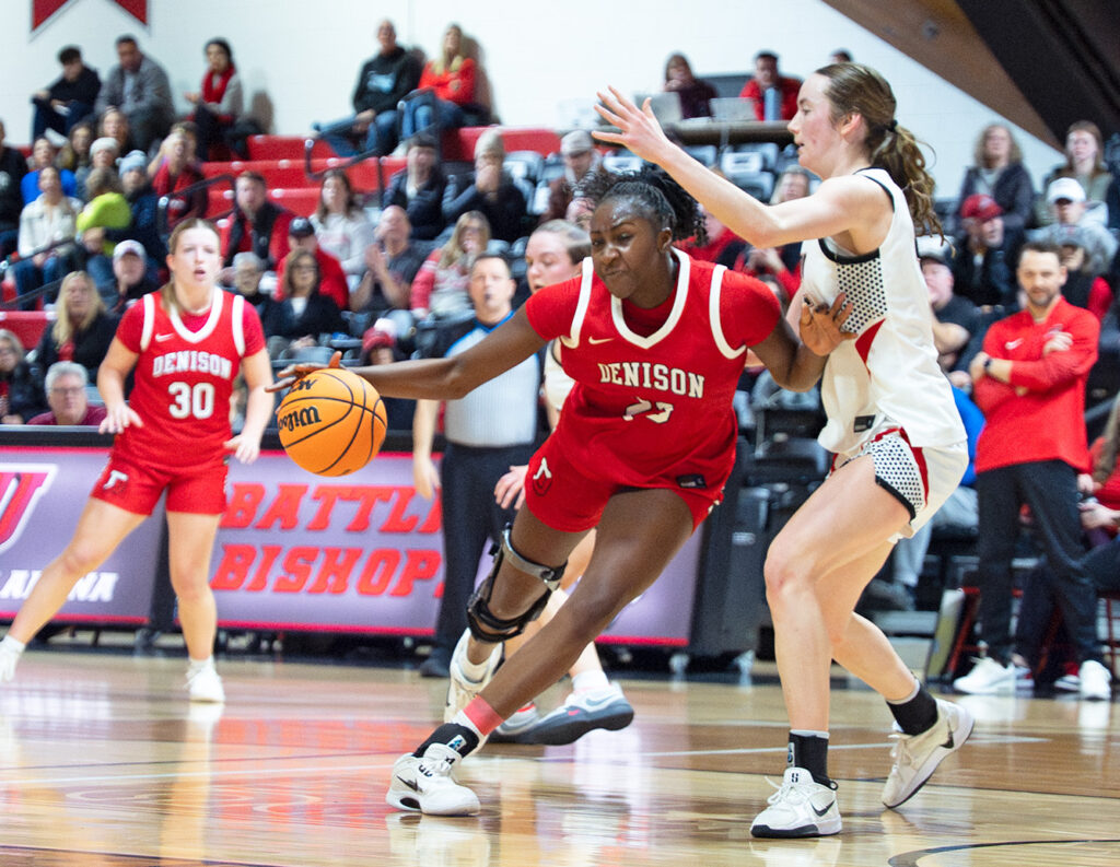 Anelly Mad-tongué paced Denison’s balanced attack with 15 points, eight rebounds, and four steals. Also scoring in double figures for the Big Red were Adelyn Moore (13), Ada Taute (12), and Brooke Toigo (11).