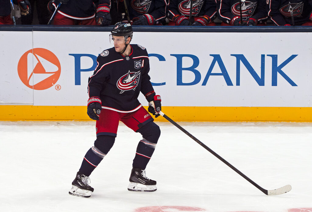Charlie Coyle scored the tying goal in the second period at Utah Sunday and the Columbus Blue Jackets went on to win 3-2 in overtime. File photo