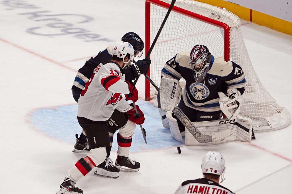 Columbus goaltender Jet Greaves stopped 30 of 33 shots on the night (.909), but suffered the loss, the first in his last four outings. Jackets forward Miles Wood left the ice in the first period with what appeared to be a lower-body injury after a collision into the boards.